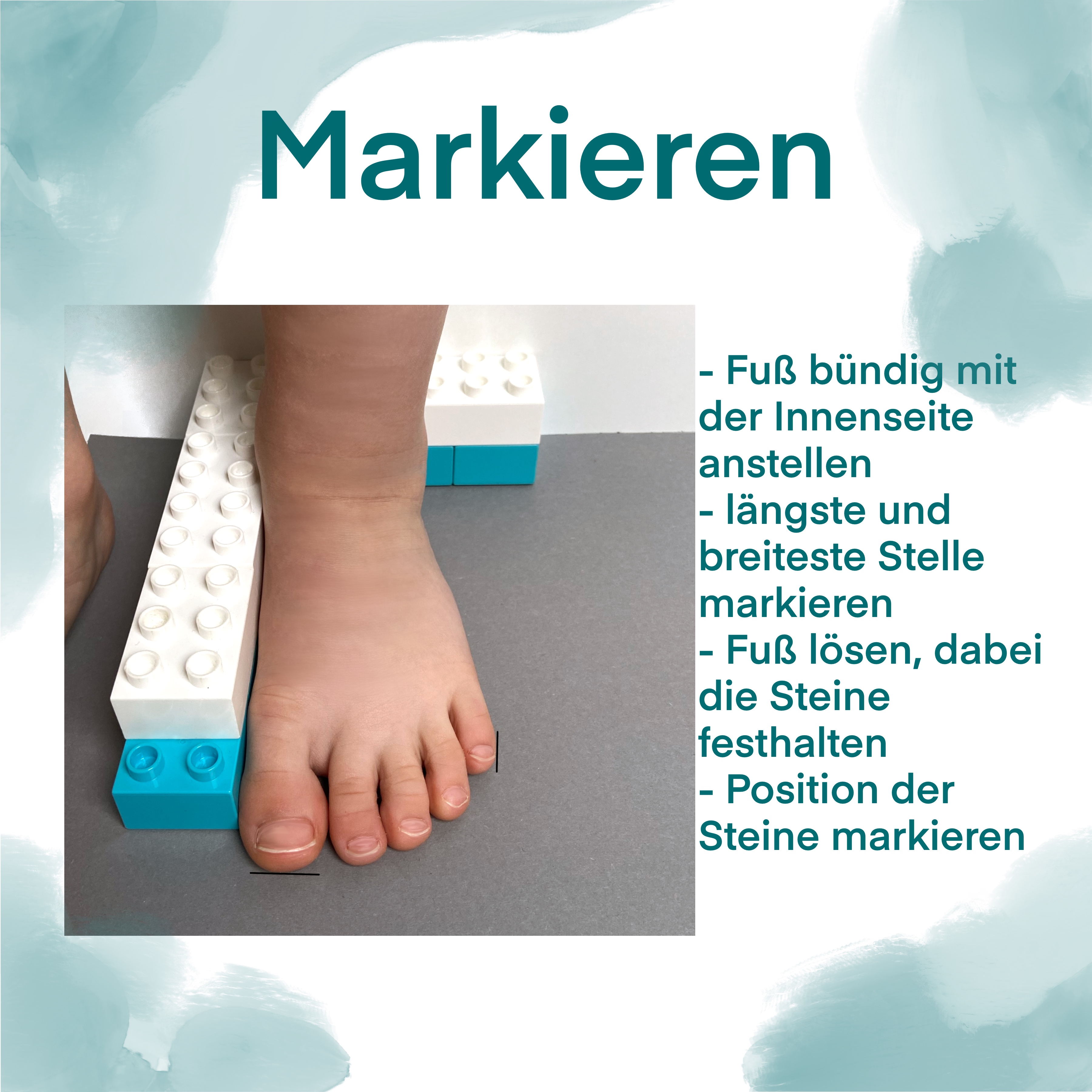 • Ebenso die Breite zwischen den beiden Markierungen im Zehenbereich.