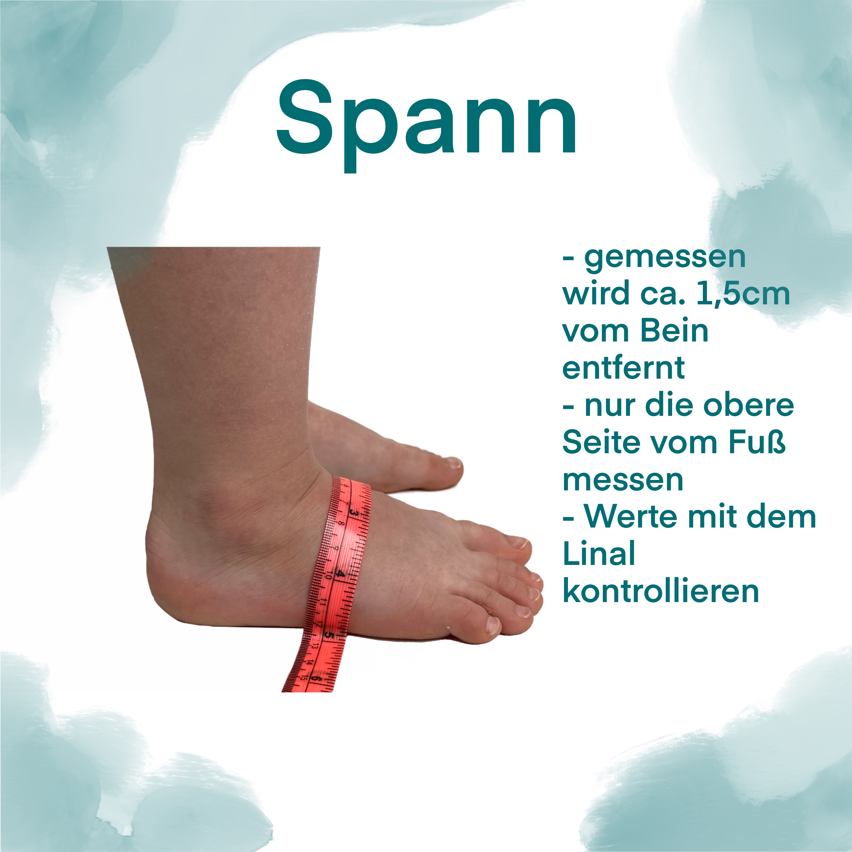 • Spannmaß wird ca. 1,5 cm vom Bein entfernt (also weiter vorne Richtung Zehen) gemessen
