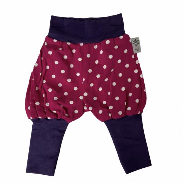 Sehr schöne und gemütliche Pumphose aus Jersey. Durch den weiten Schnitt und die Bündchen an Bauch und Beinen, ist die Hose sehr gemütlich und bietet ausreichend Bewegungsfreiheit zum Spielen und Toben.